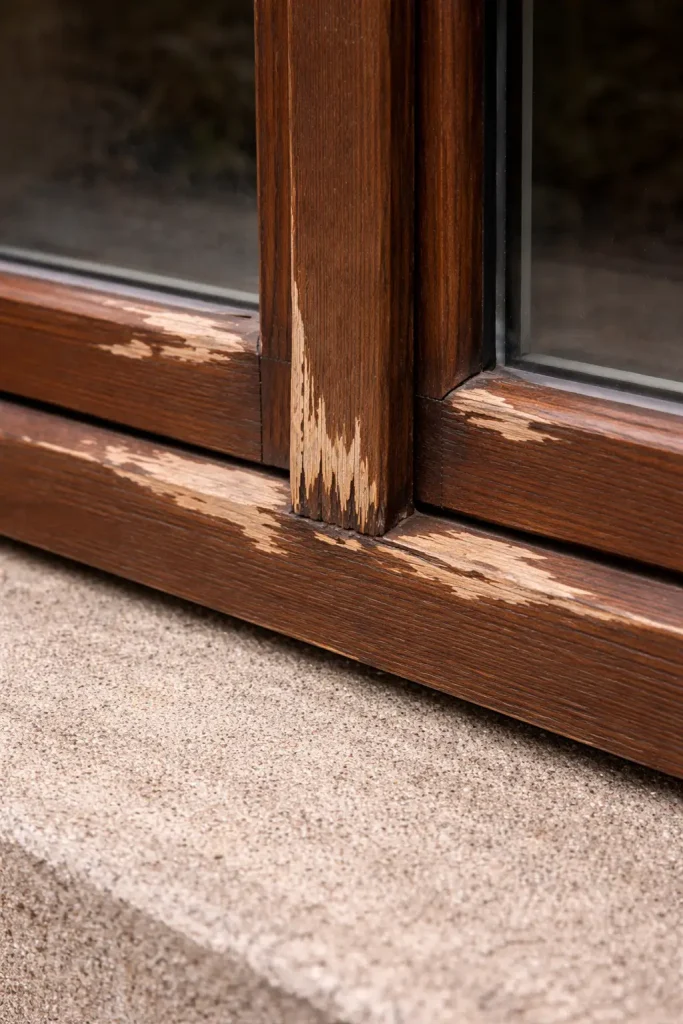 Miejsca szczególnie narażone np. na przetarcia to dolne krawędzie skrzydeł, narożniki, miejsca przy szybach. To właśnie tam najczęściej zaczyna się degradacja. W jednej z realizacji okna były „ładnie pomalowane” – poza dolnymi listwami. Po roku to właśnie tam zaczęło się łuszczenie.